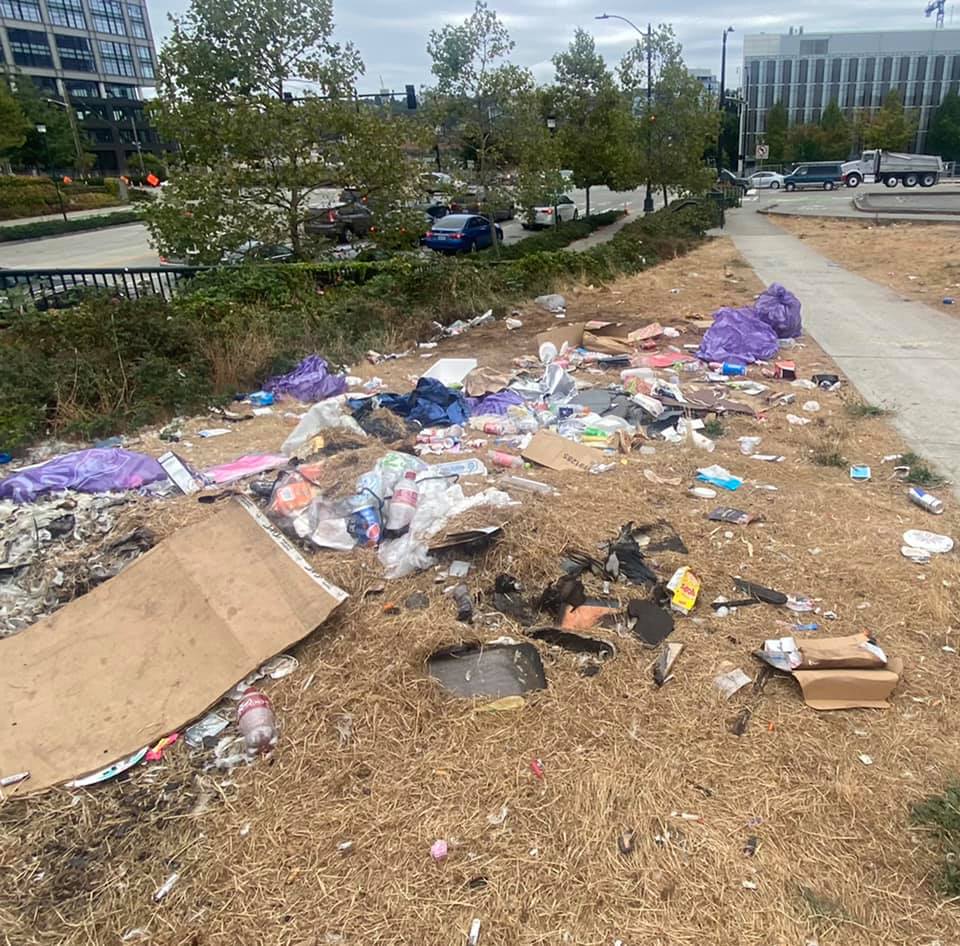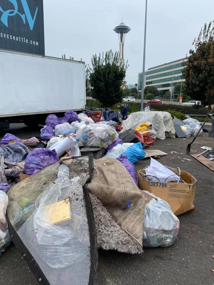 We Heart Seattle has in recent days removed more than 20,000 pounds of trash from the encampment at Dexter and Mercer in South Lake Union.  Volunteers also connected dozens of individuals with resources and are continuing to develop meaningful relationships with those living in the encampment. The before and after photos of the clean-up efforts as shown here are a testament to the volunteer-led boots on the ground hard work, but sadly, conditions overall at the encampment remain inhumane and unsafe.