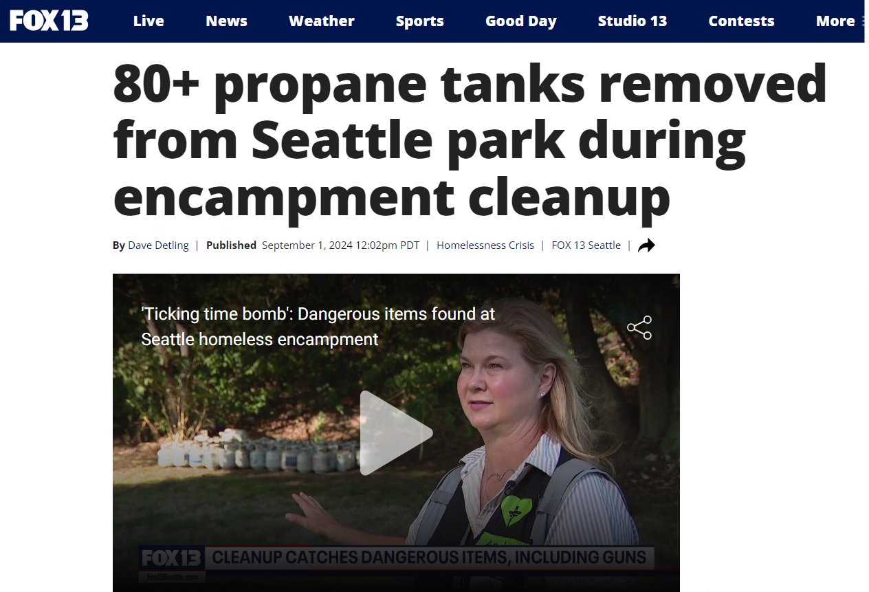 80+ propane tanks removed from Seattle park during encampment cleanup by Dave Detling