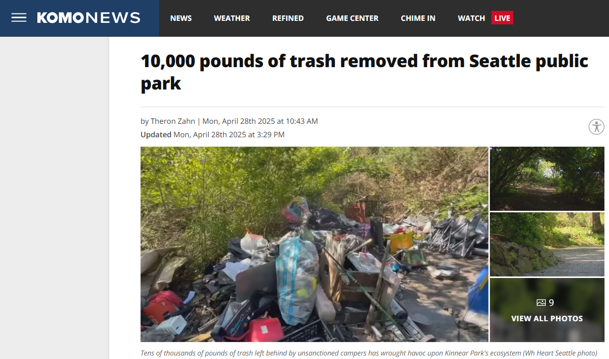 10,000 pounds of trash removed from Seattle public park by Theron Zahn KOMO News