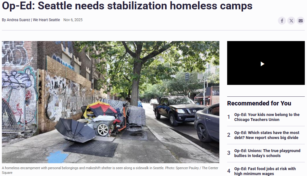 Op-Ed: Seattle needs stabilization homeless camps by Andrea Suarez – The Center Square