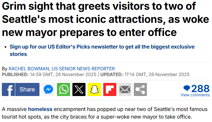 Grim sight that greets visitors to two of Seattle’s most iconic attractions, as woke new mayor prepares to enter office by Rachel Bowman – Daily Mail UK