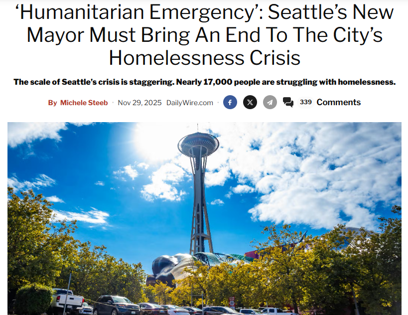 ‘Humanitarian Emergency’: Seattle’s New Mayor Must Bring An End To The City’s Homelessness Crisis by Michele Steeb – Daily Wire